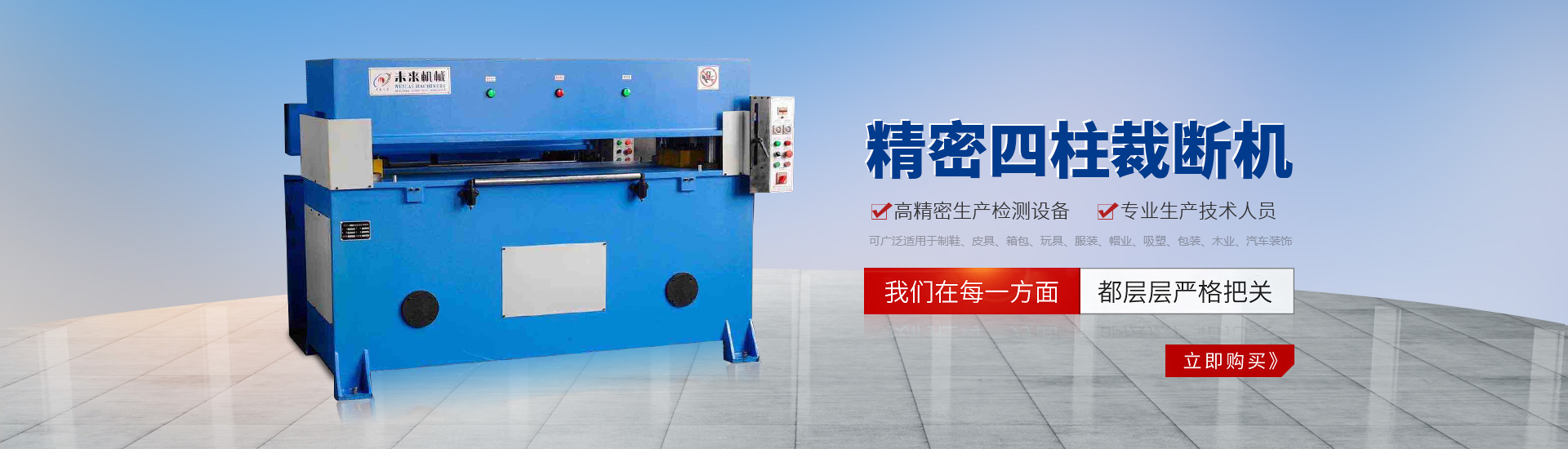 公司專(zhuān)業(yè)制造l 2T一25T液壓搖臂式裁斷機(jī):25T一30T液壓平面式裁斷機(jī);25T一30T液壓四柱龍門(mén)移動(dòng)式裁斷機(jī);25T一100T液壓四柱平面式裁斷機(jī):30T一100T精密四柱式裁斷機(jī)(自動(dòng)進(jìn)料);100T一200T液壓四柱下壓式裁斷機(jī)(自動(dòng)進(jìn)料)和客戶要求的特型裁斷機(jī)械系列。產(chǎn)品規(guī)格齊全,可廣泛適用于制鞋、皮具、箱包、玩具、服裝、帽業(yè)、吸塑、包裝、木業(yè)、汽車(chē)裝飾等行業(yè)。